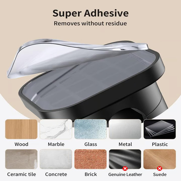 Залепва здраво за гладки повърхности като дърво, плочки, метал и стени.