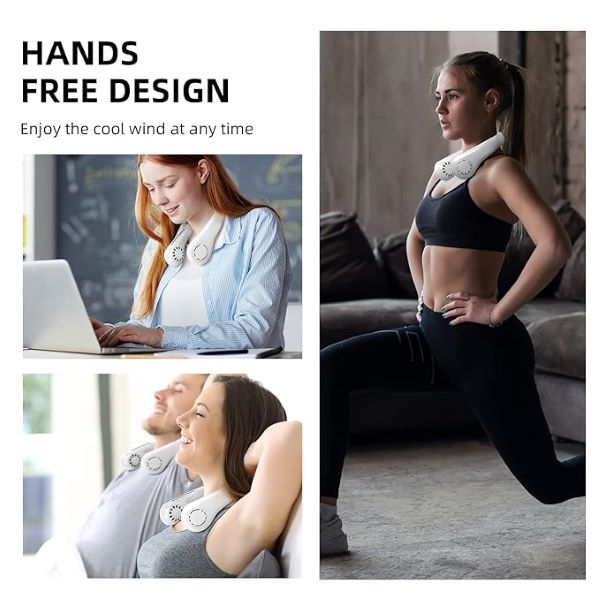 С уникален дизайн на формата на изхода за въздух, този вентилатор за врата е ново решение за поддържане на прохлада, без да заема ръцете ви.