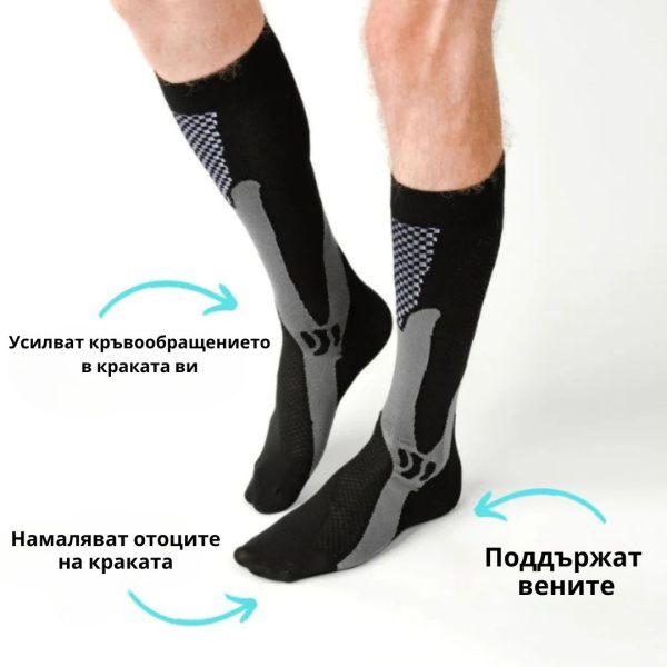 Тези чорапи спомагат за подобряване на притока на кръв, което означава по-малко умора и повече енергия за деня ви. Идеални за дълги часове на крак или интензивна физическа активност.