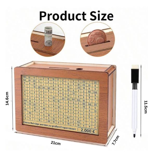 1 x COINSAVE Дървена кутия за спестяване на пари