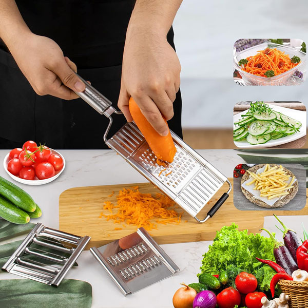 🧑🍳 Многофункционален дизайн: Режете, настъргвайте и нарязвайте с един инструмент—идеален за салати, пържени картофи и бързи ястия.