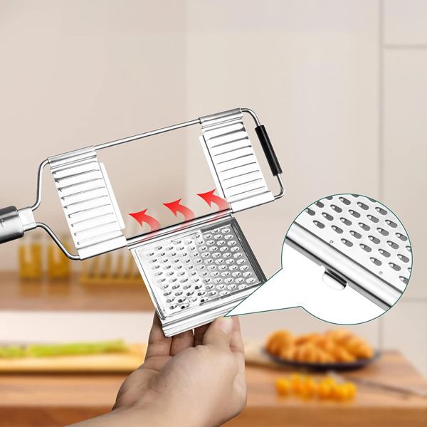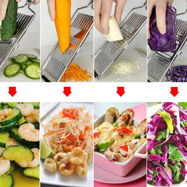 Резачът за зеленчуци SLICEIEST комбинира три основни функции—рязане, настъргване и нарязване—в един компактен инструмент. Идеален за приготвяне на салати, пържени картофи, ястия на тиган и други бързи ястия, той елиминира нуждата от множество кухненски уреди, спестявайки както място, така и време.