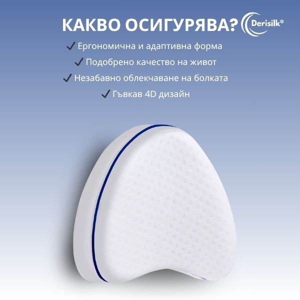 Поставянето на тази възглавница със специална форма между краката ви е средство за защита на хората, страдащи от артрит и ишиас. Тя разпределя равномерно теглото на тялото ви и предотвратява натиска върху ставите и кръвоносните съдове, което подобрява кръвообращението и намалява болката и възпалението в ставните тъкани.