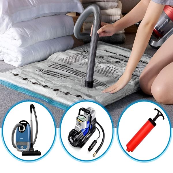 Не са необходими специални инструменти—просто използвайте всеки прахосмукачка, за да компресирате торбите за секунди! Освен това са многократни, така че можете да съхранявате и защитавате дрехите си отново и отново.