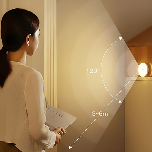 Случвало ли ви се е да влезете в тъмен коридор и да ви се иска светлината просто да се включи? С ъгъл на засичане 120° и обхват 3-6 метра тази лампа осигурява цялостно покритие и светва веднага при засичане на движение, като се изключва след 20-30 секунди бездействие.